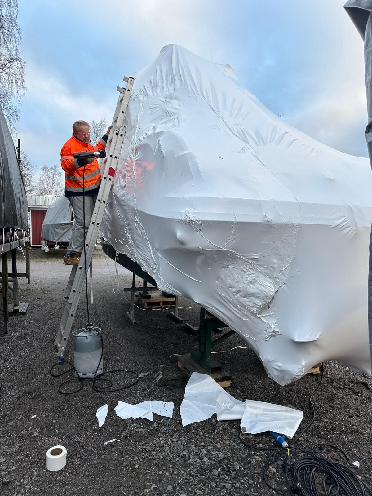 Pelkkä valmis pussi ei aina riitä, vaan joskus vene pitää suojata siellä missä se on.